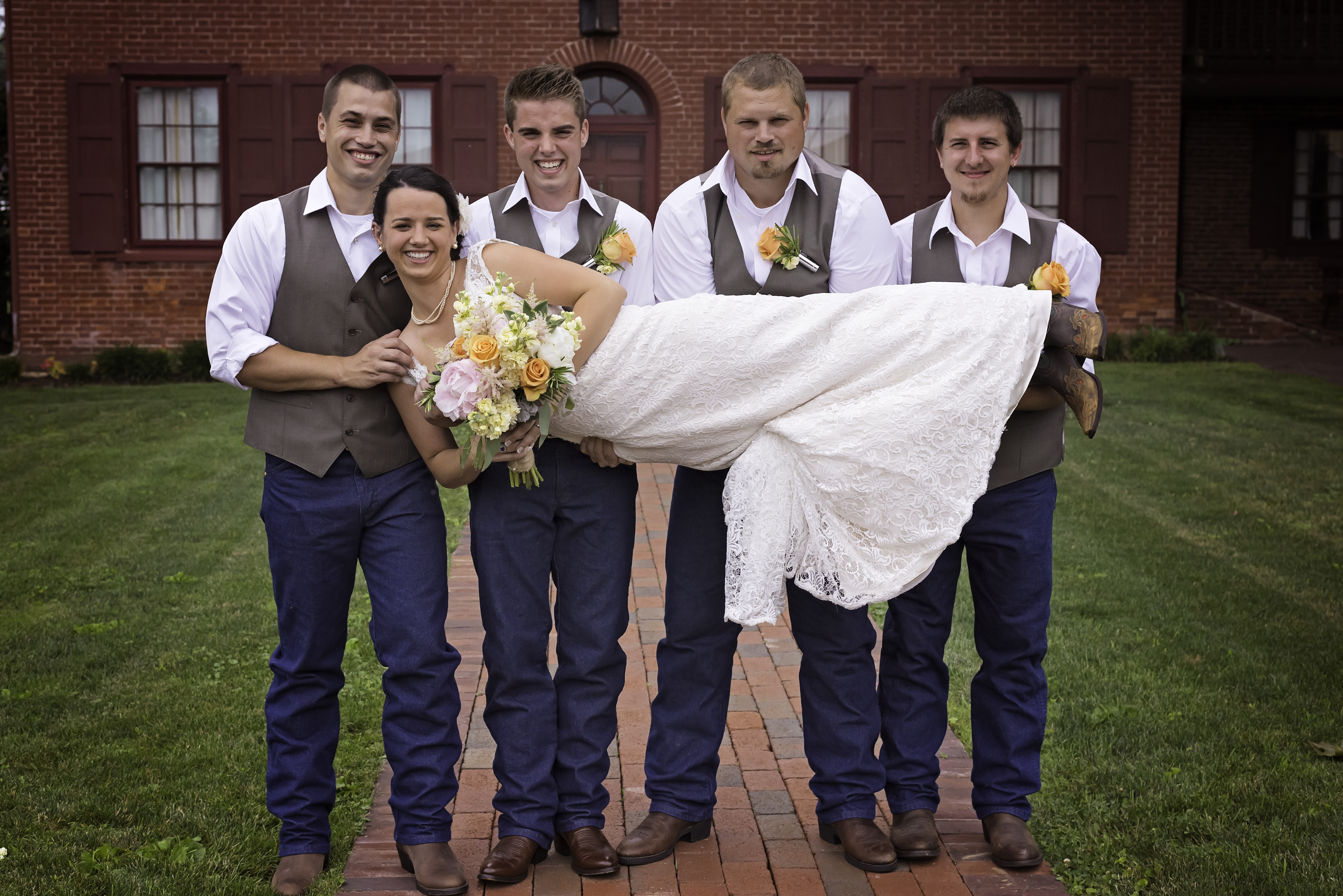 groomsmen lift bride